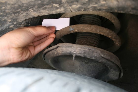 ✅ هرگز اندازهگیری کمکفنر را درحالیکه خودرو روی جک یا بالابر قرار دارد انجام ندهید.