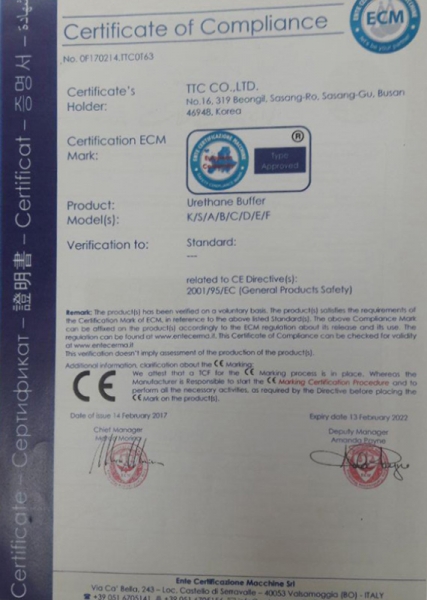 شرکت کره TTC با تکیه بر دانش مهندسی پیشرفته و بهرهگیری از فناوری روز دنیا، موفق به دریافت معتبرترین استانداردها و گواهینامههای بینالمللی شدها است. این گواهینامهها، نشاندهنده کیفیت بالای مواد اولیه، تولید بی عیب و نقص با جدیدترین تکنولوژی روز دنیا و طول عمر بالا.